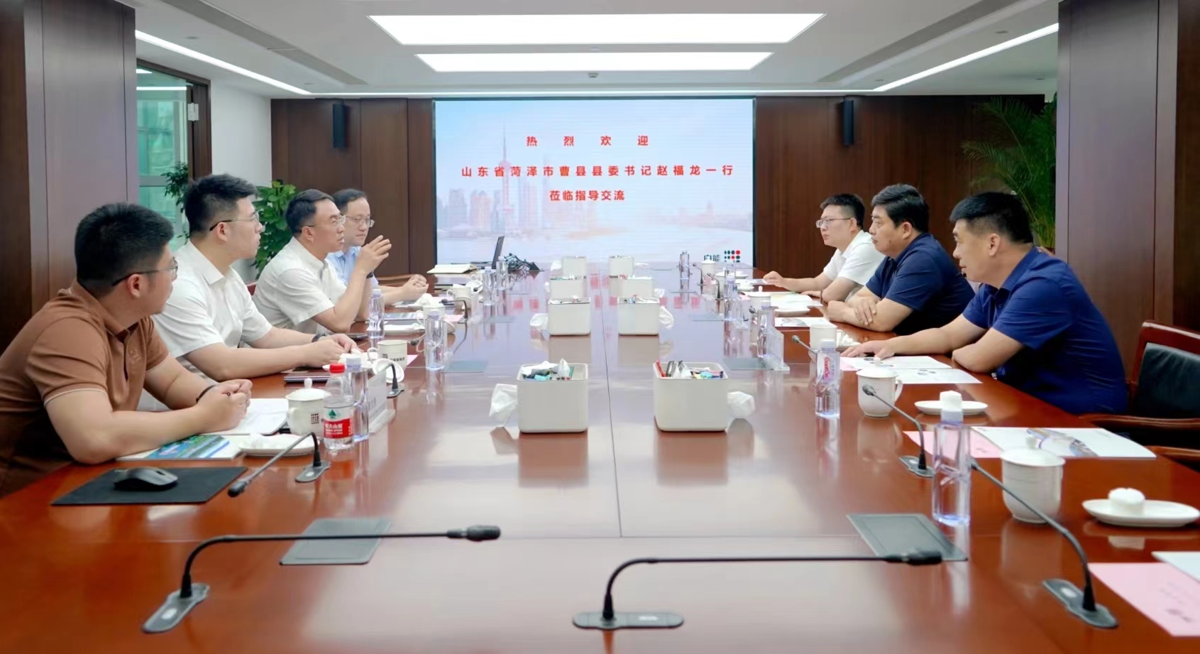 6月30日上午,集團董事長丁驥會同申能新能源黨委書記金風保在申能國際大廈24樓與山東省菏澤市曹縣縣委書記趙福龍進行座談交流。